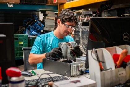 Publicação ilustrada revela o caminho dos computadores recondicionados até comunidades remotas e…