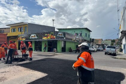 Recuperação do pavimento na rua Formosa, no bairro Flores, com aplicação de…