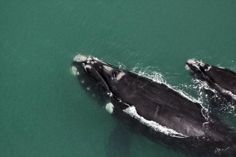 Baleias-francas nadam no litoral sul de Santa Catarina