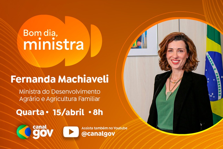 A ministra do Desenvolvimento Agrário e Agricultura Familiar, Fernanda Machiaveli, é a convidada do programa “Bom Dia, Ministra” desta quarta-feira, 15 de abril. Durante a entrevista com rádios e portais de notícias de todo o país, a partir das 8h, ela abordará a ampliação do crédito rural da agricultura familiar, com destaque para iniciativas como o Plano Safra da Agricultura Familiar e o Programa Nacional de Fortalecimento da Agricultura Familiar (Pronaf).