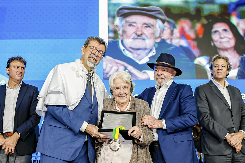 Mujica é um dos líderes mais admirados da América Latina, e sua trajetória foi reconhecida pelo presidente Luiz Inácio Lula da Silva em uma cerimônia marcante. No dia 19 de março, Lula participou da entrega do título de Doutor Honoris Causa (in memoriam) ao ex-presidente uruguaio, José Alberto ‘Pepe’ Mujica Cordano, pela Universidade Federal do ABC (UFABC). O evento foi realizado no Centro de Formação e Educação Permanente (Cenforpe), em São Bernardo do Campo (SP).