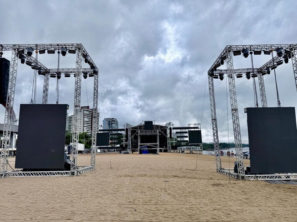 Na Ponta Negra, o palco principal tem 70 metros de boca de cena e ocupa uma área total de aproximadamente 30 mil metros quadrados. Segundo a prefeitura, a dimensão da estrutura busca garantir visibilidade, conforto e segurança ao público.